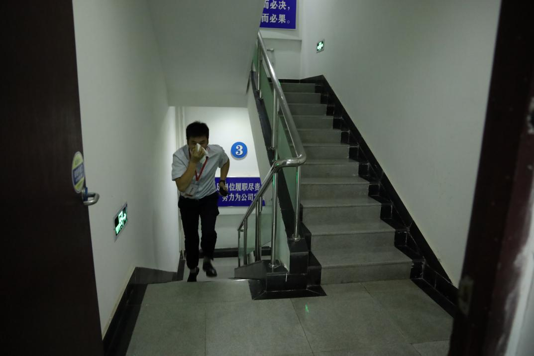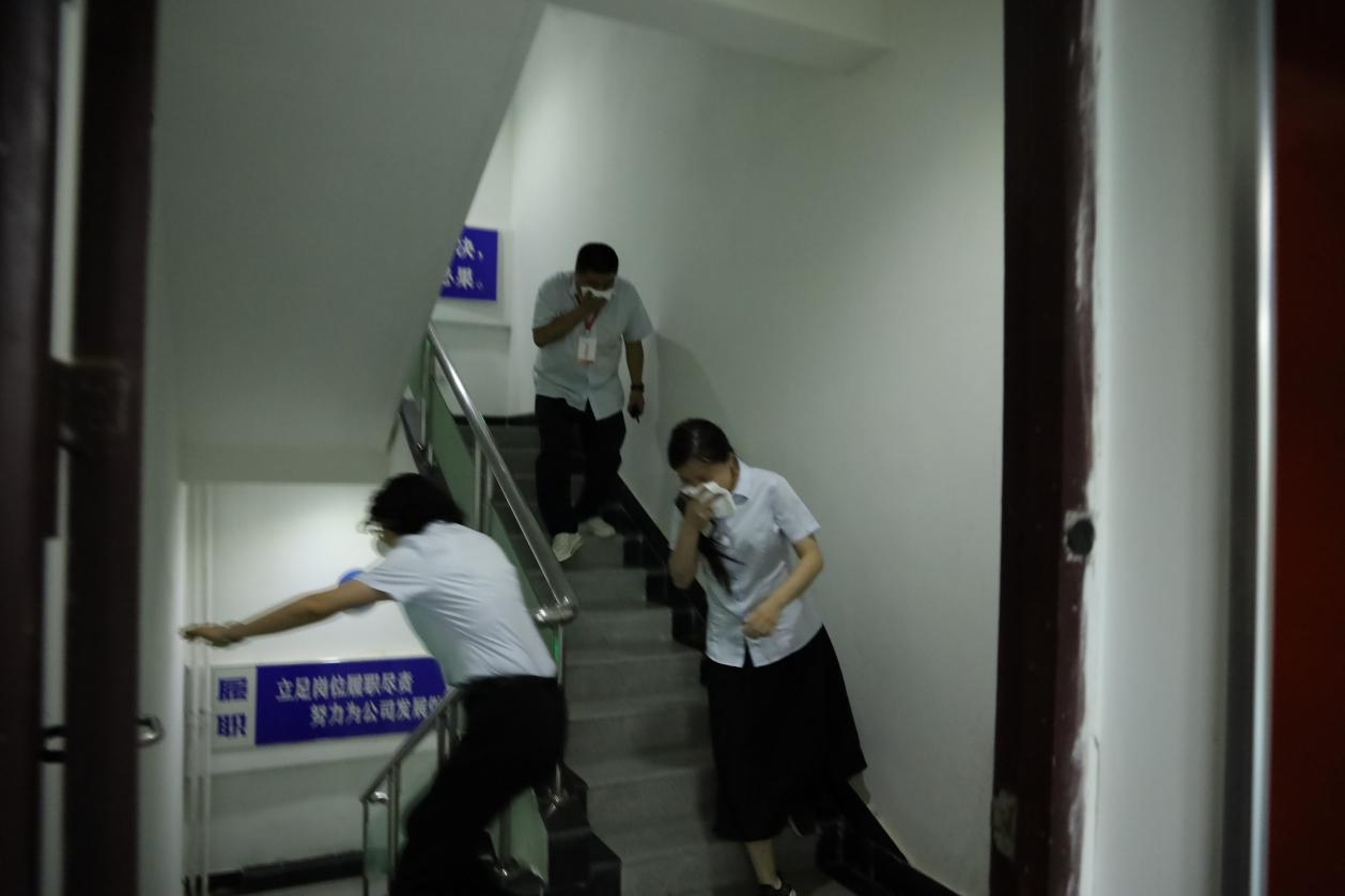伴随着警报响起,火灾扑救及疏散逃生演练正式启动。本次演练活动以办公楼三楼突发火灾为模拟情景,指挥部接到火警通知后,立即指派人员到达火灾现场查看情况。随着火情确认,指挥部立即启动应急预案,各应急小组按照职责分工,迅速就位开展应急处置工作,全体员工有序撤离至安全区域。