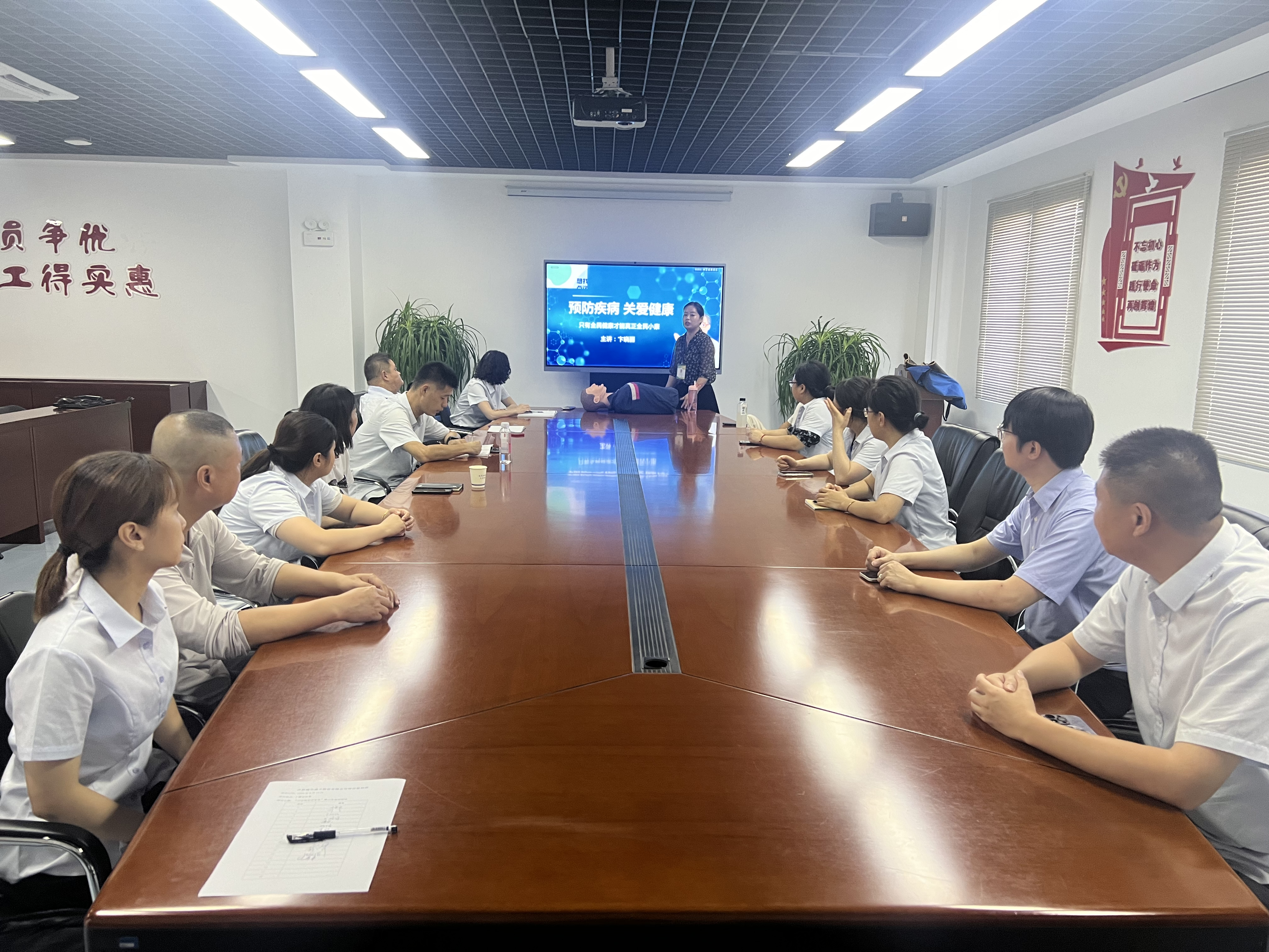 此次培训特邀合肥市为民健康教育中心讲师卞晓丽进行讲解,主讲内容包括突发事件的应急处理、重大疾病和单位常见职业性疾病的预防知识和改善、心理疏导解压释压。卞老师现场示范了急救方法及要领,这种理论与实践相结合的讲授方式,使员工对健康知识有了深刻的理解,得到了大家的高度认可。