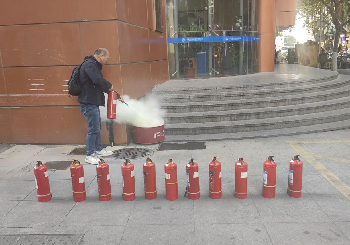 演练后,赵老师向大家讲解灭火器及消防栓的使用方法及注意事项,在场人员依次有序进行实操训练。通过理论与实践相结合的形式,促使大家熟练地掌握灭火器、消防栓等应急救援器材的使用,提高应急自救能力。