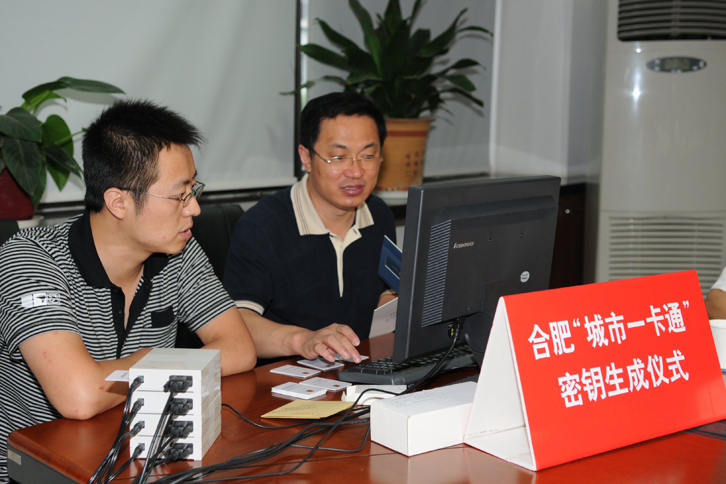 合肥“城市一卡通”密钥生成仪式在合肥城市通卡股份有限公司隆重举行,标志着“3044永利集团”已具备正式发卡的基础条件。合肥市副市长杨增权、国家建设部IC卡应用服务中心常务副主任马虹、中国建设银行安徽省分行副行长刘兴华及市直相关部门负责人出席仪式。