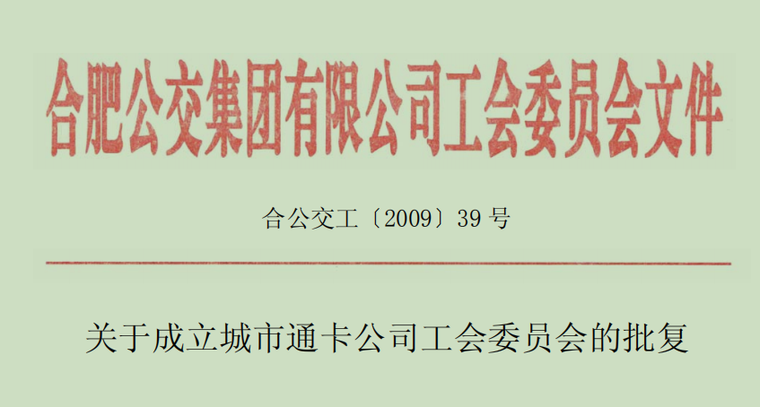 8月24日,合肥城市通卡股份有限公司党支部正式成立;9月17日,合肥城市通卡股份有限公司团支部正式成立;12月11日,合肥城市通卡股份有限公司工会委员会正式成立。
