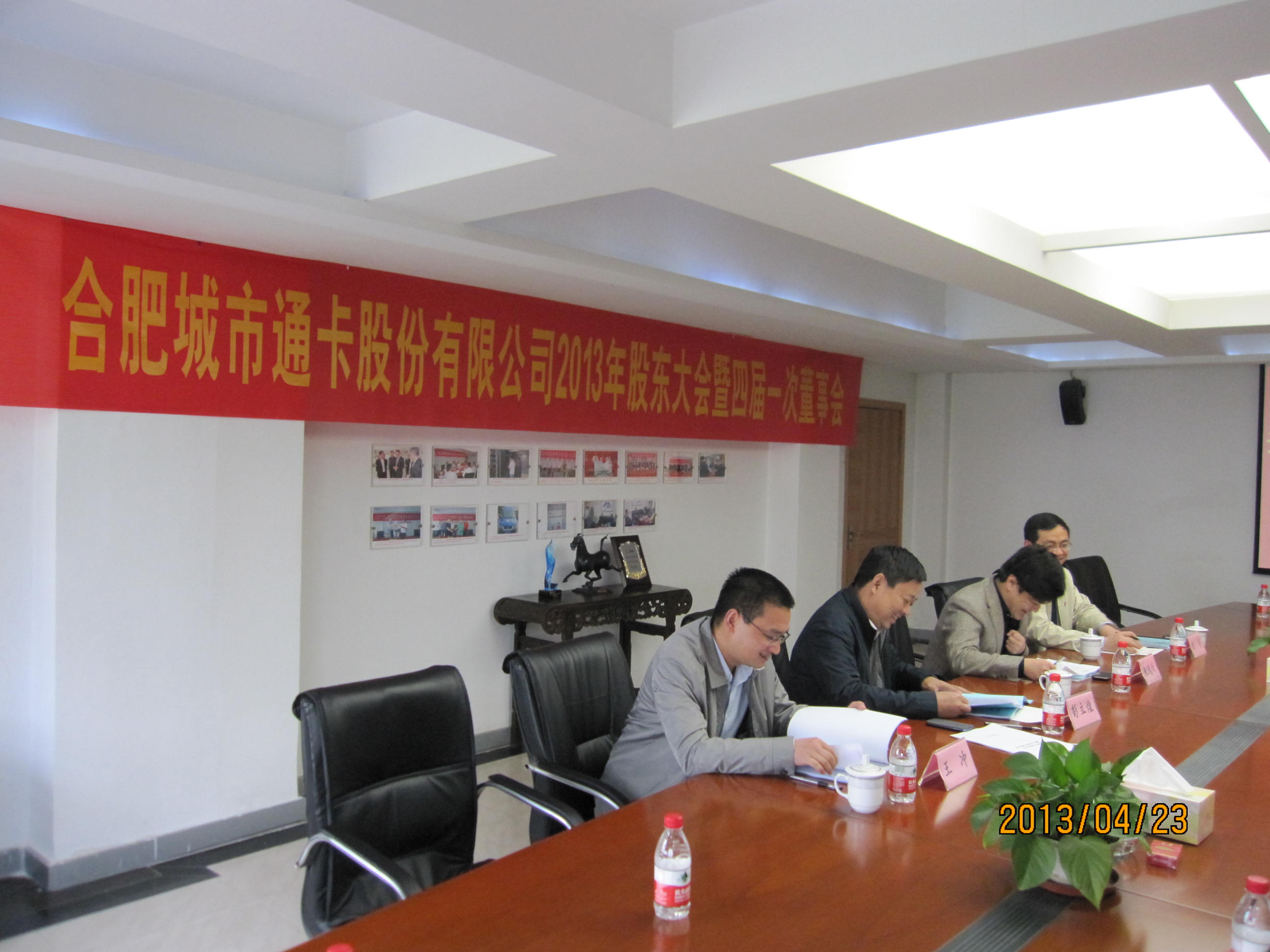 合肥城市通卡股份有限公司2013年第一次股东大会、四届一次董事会、监事会召开。