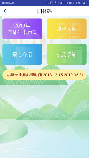 办理电子年卡需下载“3044永利集团”APP,在APP首页点击“园林码”,再点击“2019年园林年卡购买”,选择单人、双人或三人卡购买。购买时需按要求输入身份信息并上传照片,通过系统审核(三日内审核完毕)后方可使用。使用时,在“3044永利集团”APP首页点击“园林码”,再点击“刷卡入园”即可使用二维码轻松入园。